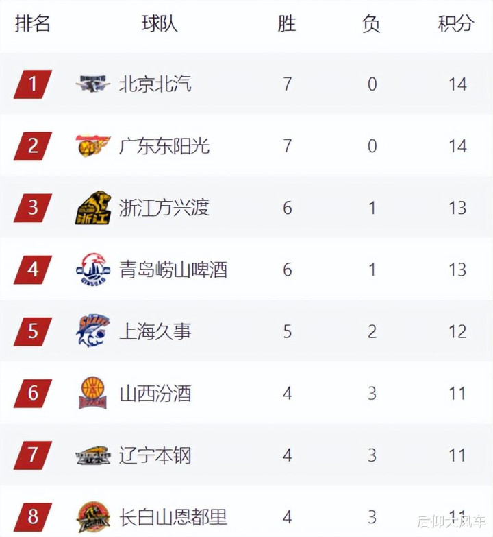 北京广东7连胜继续领跑,但北京却有可能会在下一轮被广东反超,因为第8轮北京将在客场迎战广厦,以目前广厦的阵容配置来说,尽管本土球员不如北京豪华,但外援要比北京强硬太多了,广厦有机会在下一轮击败北京。