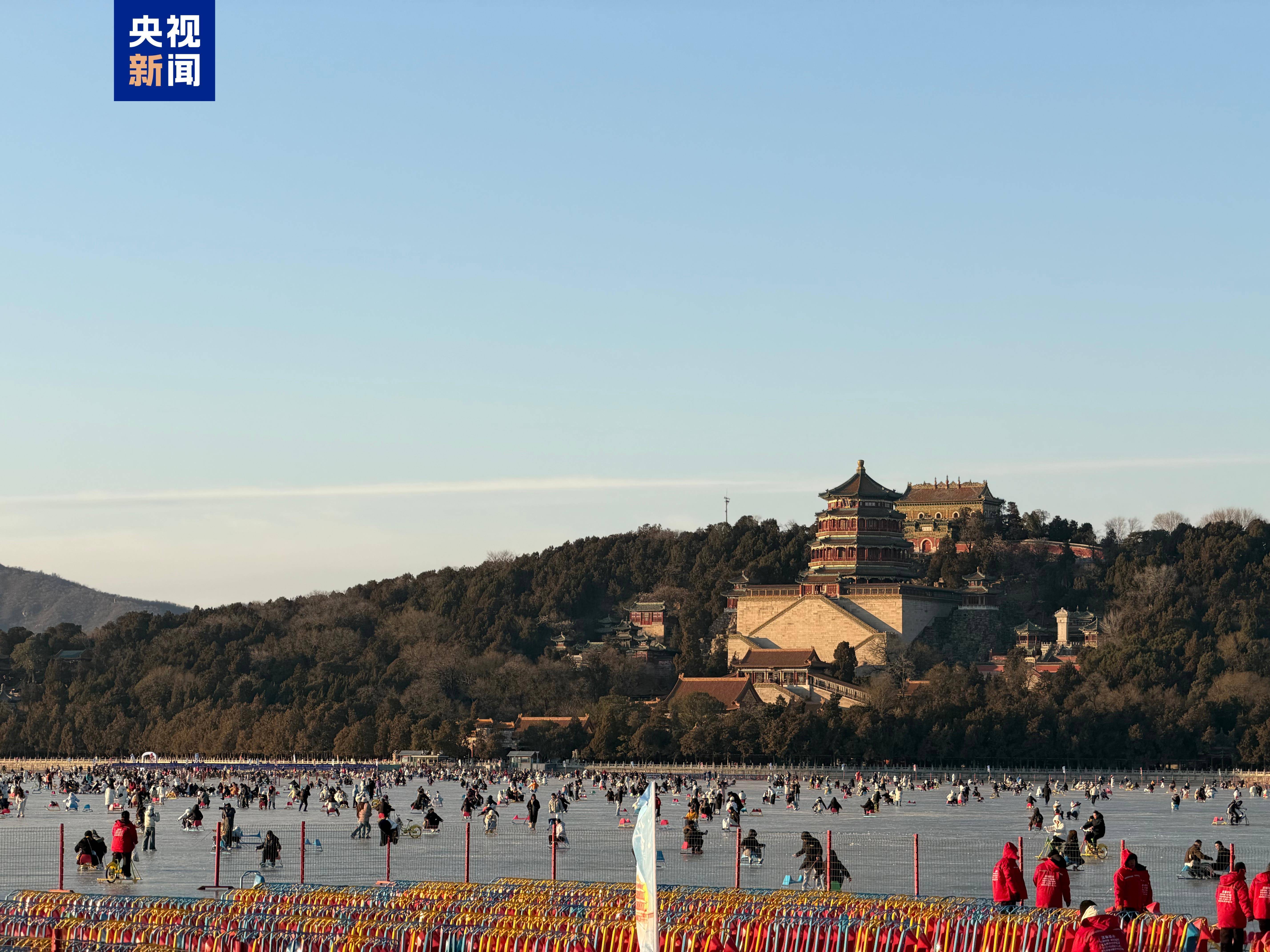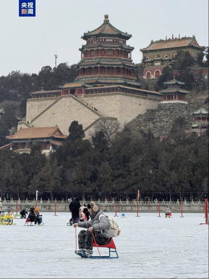 今天(17日),颐和园昆明湖冰场正式向公众开放。作为北京冬日传统游乐胜地,开放首日上午,冰场已迎来众多游客,为静谧的古典园林增添了生机盎然的冬日活力。