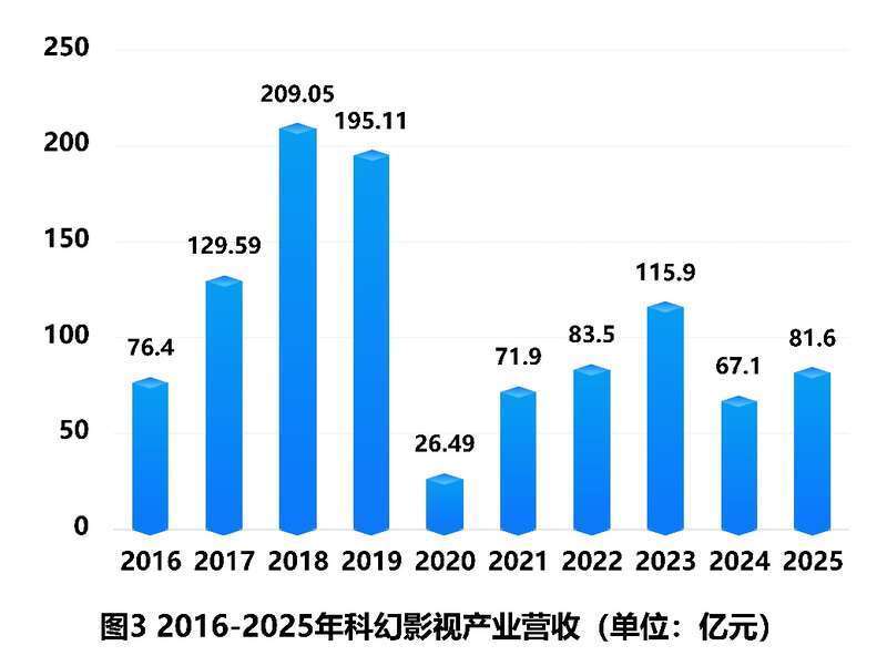 此外,今年报告新增了两个观察维度。科幻技术装备全年营收达247.4亿元,以数字内容生产技术为主体、AI为引领、沉浸体验为特色的跨界应用格局形成;中国科幻全年搜索热度同比激增203.3%,现象级IP的海外受众规模持续扩大。