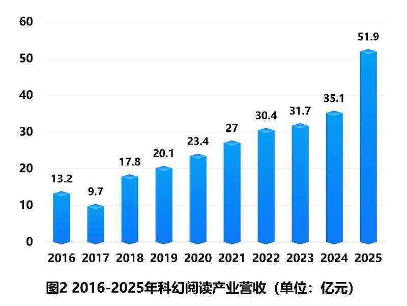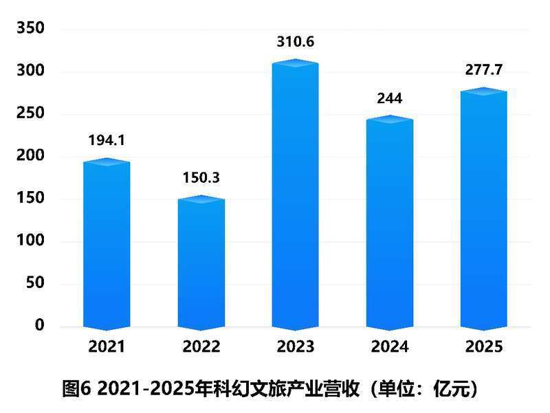 报告分析了科幻阅读、科幻影视、科幻游戏、科幻衍生品、科幻文旅五大核心产业的年度发展特征与未来动向。其中,科幻阅读产业全年营收51.9亿元,实现连续八年增长,科幻网络文学成为数字阅读核心增长动能。科幻影视产业全年营收81.6亿元,同比增长21.6%,国产科幻剧集和动画影响力持续提升,AIGC中短视频加速崛起。游戏产业全年营收779.1亿元,国产科幻游戏在海外市场表现亮眼。科幻衍生品产业全年营收70.7亿元,同比增长179.4%,原创IP是市场核心动力,AI潮玩等新形态产品为市场注入新活力。科幻文旅产业全年营收277.7亿元,同比增长13.8%,主题公园贡献核心收入,本土原创游乐项目持续增加。VR大空间、沉浸式展览和剧本娱乐等新场景不断拓展体验边界。